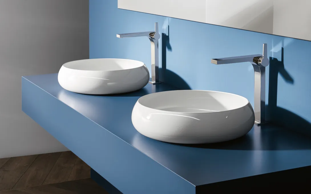 Die weiche Formensprache runder Waschtische verleiht ihnen zeitlose Eleganz und ermöglicht eine besonders platzsparende Gestaltung.