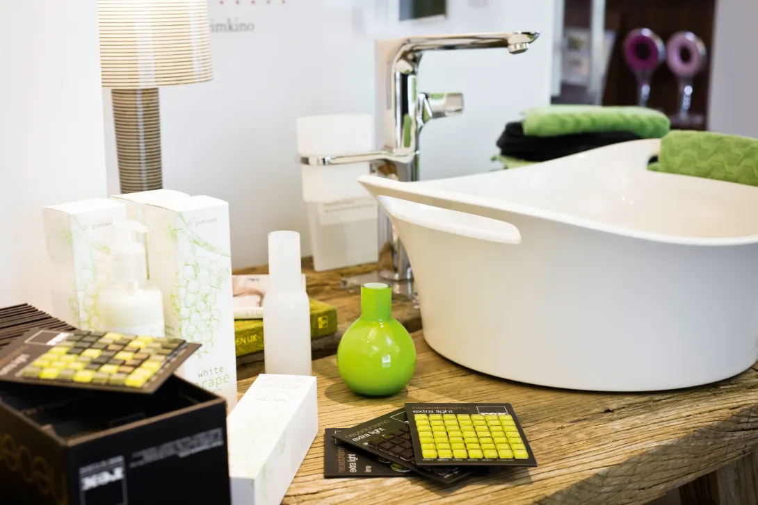 Ein Badpartner mit Anspruch bietet eine hochwertige Badausstellung, zu der auch eine große Auswahl an Fliesen und Dekoren gehört.