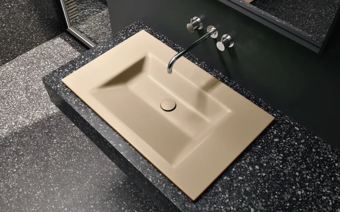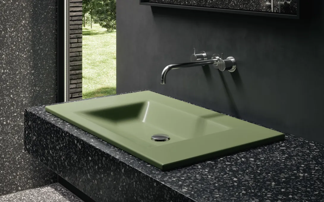 Die Einbauwaschtische aus glasiertem Titan-Stahl verbinden industrielles Fertigungs-Know-how mit anspruchsvollem Handwerk. Durch gezielte Optimierungen ist der Fertigungsprozess der Waschtische zusätzlich automatisiert wurden, ohne auf bewährte Designs zu verzichten.