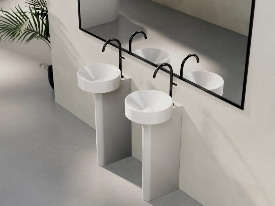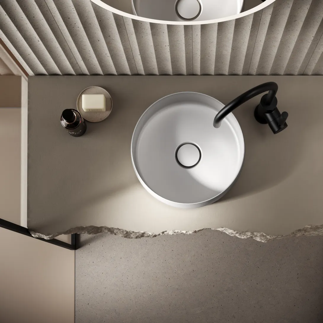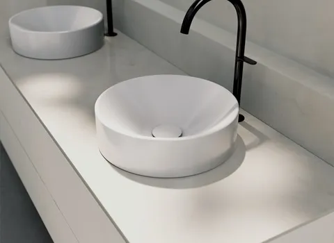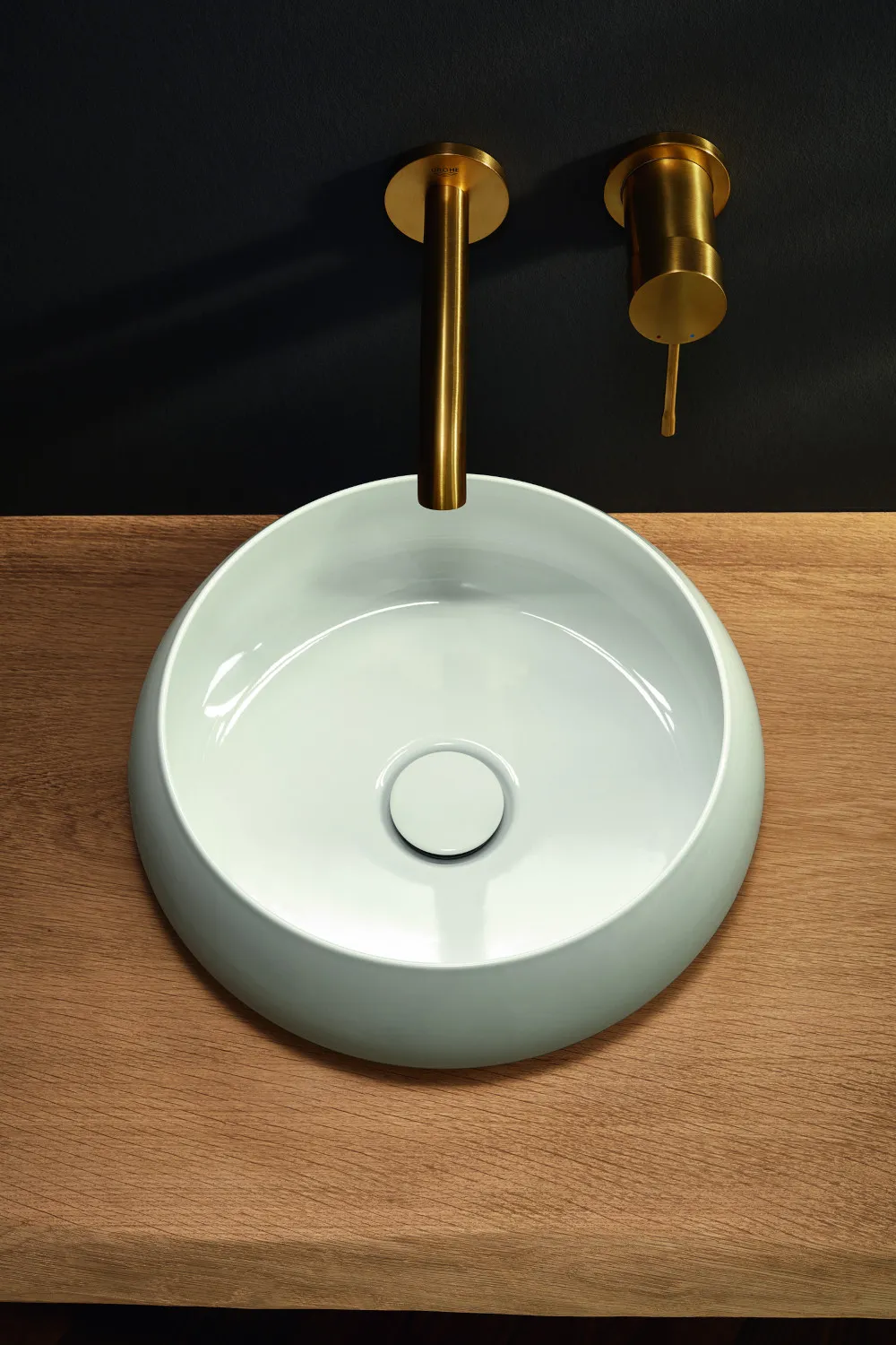 Hinter der filigranen Porzellanschalen-Optik verbirgt sich ein durchdachtes Material- und Design-Konzept. Die nach oben einsetzende Verjüngung schützt effizient vor Spritzwasser. Das hochwertige Material ist nahezu unverwüstlich und glänzt auch noch nach vielen Jahren wie am ersten Tag. Zudem ist es besonders reinigungsfreundlich und garantiert höchste Hygiene am Waschplatz.