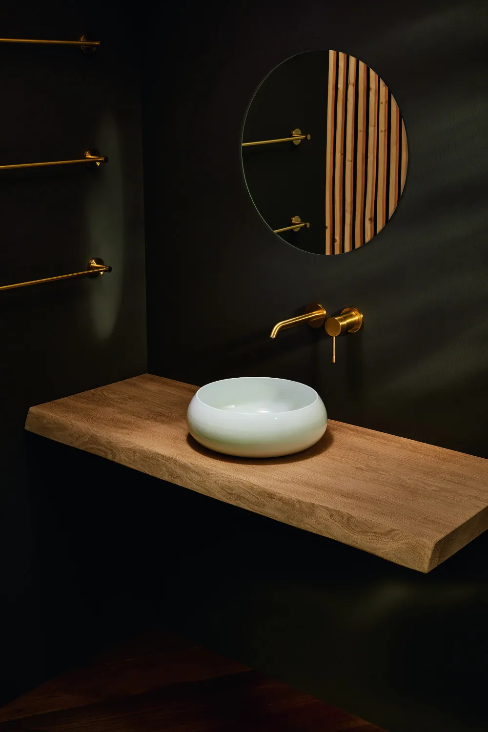 Waschbecken BetteCurve in Hazel auf Waschtisch frei im Raum stehend