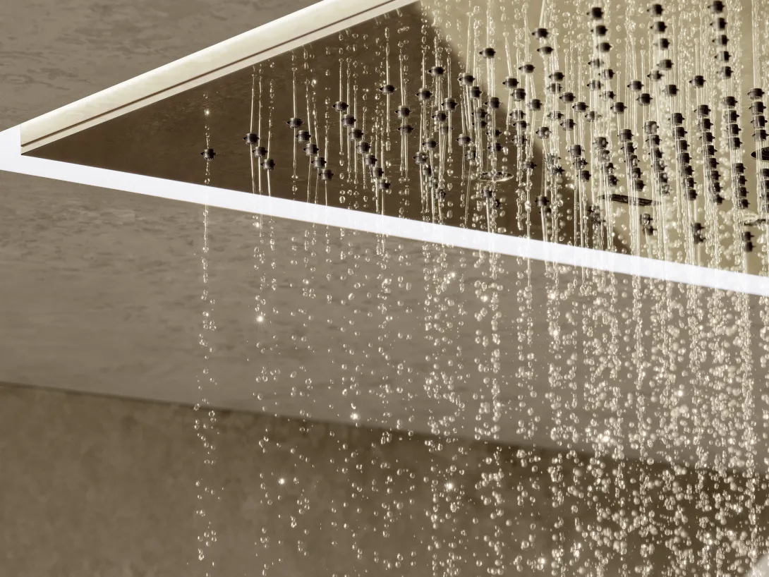 SERENITY SKY fügt sich mit seiner deckenbündigen, nahtlosen Integration harmonisch in jedes Badezimmer ein. Ohne sichtbare Verschraubungen und mit präziser Verarbeitung vereint die Duscharmatur Ästhetik und Funktion. Die intelligente Strahlanordnung sorgt für eine effiziente Wasserverwendung und eine maximale Regenabdeckung, während das speziell angepasste Spray-Face den Körper sanft umhüllt und ein immersives Duscherlebnis schafft.