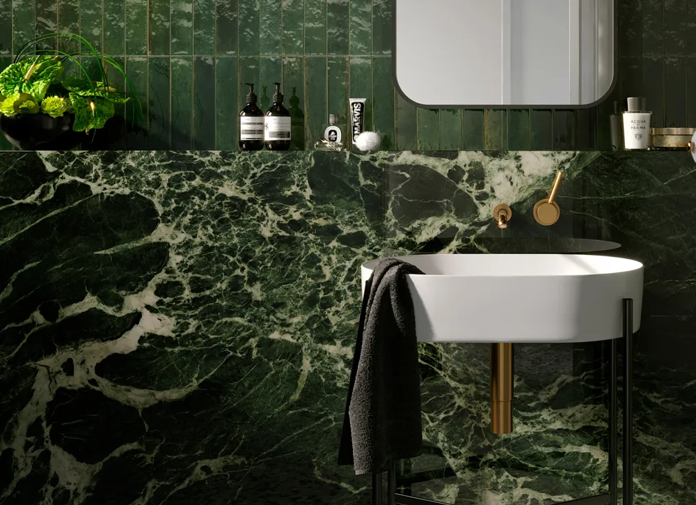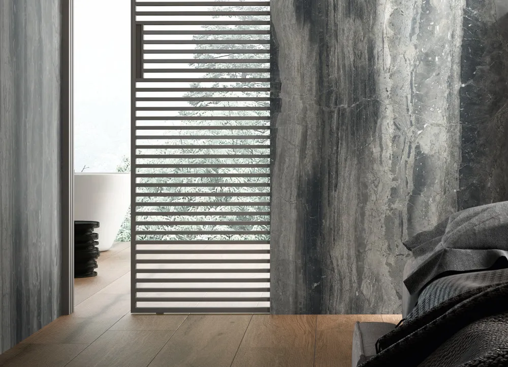 Mit den Fliesen der Kollektion Grande von Marazzi sind großflächige Verkleidungen von Wänden, Böden und Flächen möglich, da sie in den Formaten 162 x 324 cm, 160 x 320 cm, 120 x 240 cm wie auch 120 x 120 cm erhältlich sind.